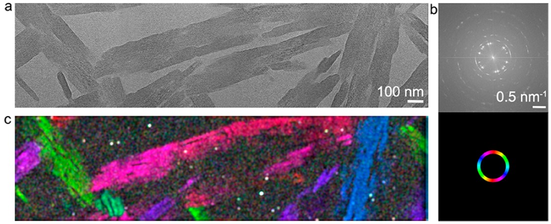 微孔材料被认为是氢能汽车最有前景的吸附剂,其储氢和放氢过程分别为放热和吸热过程,但该类材料一般是热绝缘材料,如已报道COFs的热导系数接近棉花(0.04 W m-1 K-1),远低于美国能源部规定该类材料的热导系数至少达到1~3 W /m K以满足汽车快速加氢(3到5分钟)的需求。通常COFs是一类离散状态的颗粒状,结晶度低,晶畴尺寸受限(通常小于50 nm)以及晶畴之间的连接不良,严重阻碍了材料内部的热传递。为此,物理系及其合作团队在水/空气界面上实现了微米级单晶COFs带的定向生长,这些COFs带通过自助装的方式堆叠在一起,形成大面积二维薄膜。应用三维透射电子显微镜等进行结构表征,发现这些COFs带均为单晶。进一步将单晶COFs带定向堆叠成大面积薄膜,使其易于转移并悬空于目标支撑物,结合非接触光热拉曼测量技术,获得二维COFs的室温下的本征面内热导率高达5.31±0.37 W m-1 K-1,这个数值比目前报道的COFs的导热系数高两个数量级。多孔COFs本征高热导率的实现,为进一步深入理解COFs、MOFs的热传导理论提供了重要的实验依据,也为实验验证多孔材料热传导性质提供了良好的平台而具有重要的理论意义。该实验工作为提高微孔材料的导热能力提供了可行的探索方向,改变了常见COFs、MOFs材料多作为良好热绝缘体的现状,拓宽了微孔材料的应用范围,对发展能源汽车储氢材料和大规模集成电路低介电(多为微孔材料)快速散热材料具有重要的理论和实际指导意义。