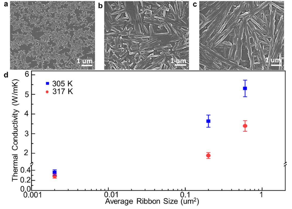 图3. SYSU-7 COFs自组装薄膜热导率对晶畴尺寸、温度依赖关系。